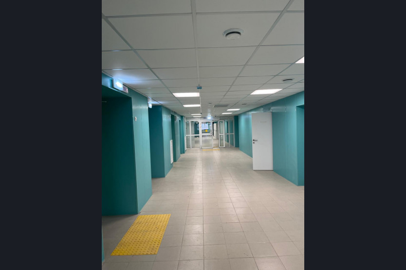 На каждом этаже предусмотрены санузлы для персонала и пациентов. Здание оборудовано двумя лестничными клетками и лифтами грузоподъёмностью 1000кг.